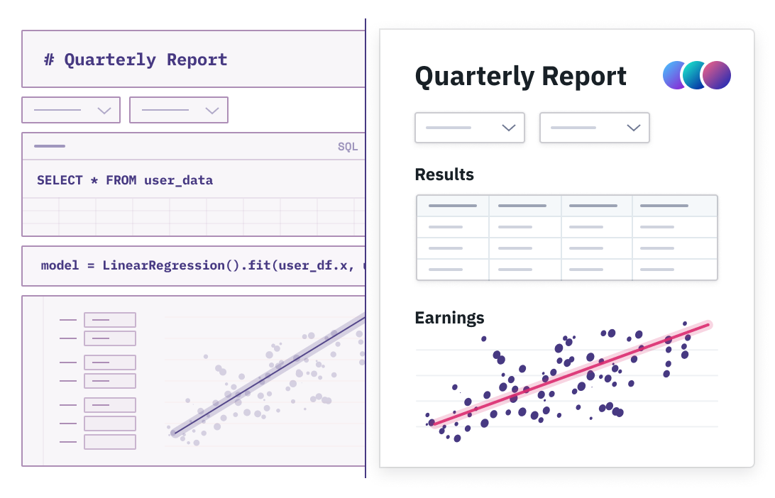 This fragmentation is painful, and also makes it hard to collaborate and share. In fact, as Data teams have gotten more sophisticated, we have seen it get harder to communicate their work. Copy-pasted charts. Emailed CSVs. One-off decks and PDF'd docs. Custom apps. It's a mess.