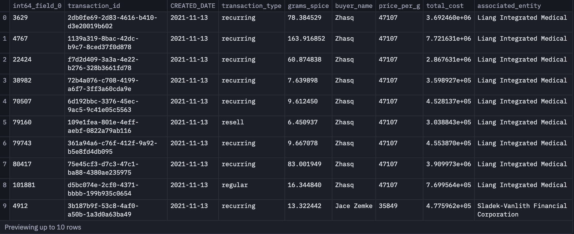 SELECT * FROM atreides.spice_purchases