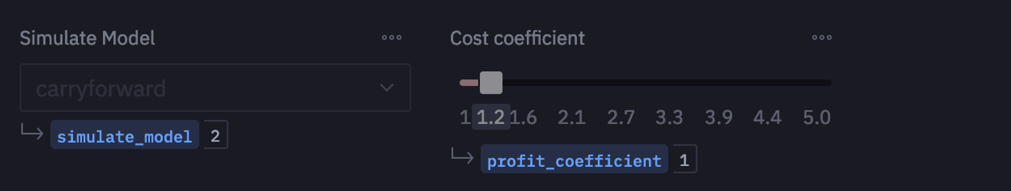 When a new selection is made by a user, the relevant code cells below will automatically re-execute using the new values. This is powered by the Reactive Execution model, so only necessary cells will be re-run— not the whole project.