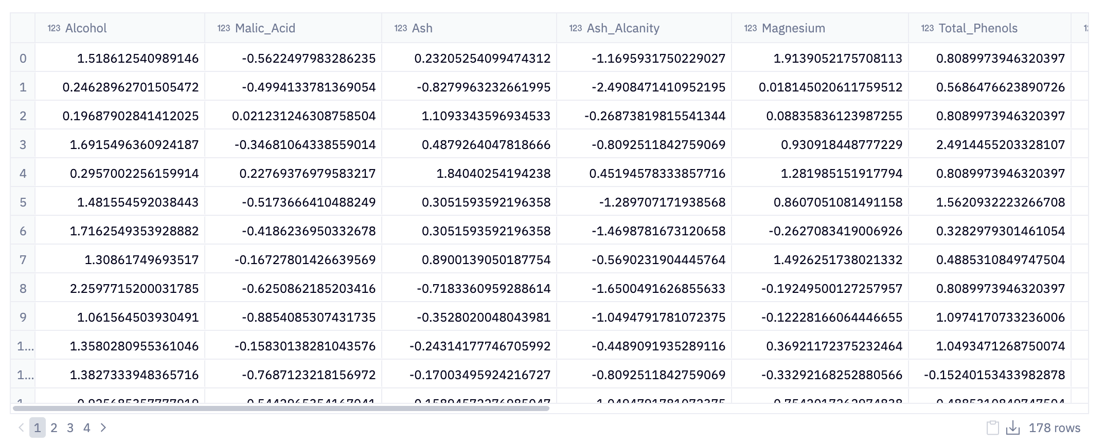 The next line, data = pd.DataFrame(data = scaler.fit_transform(data), columns = data.columns), applies this scaling transformation to the data DataFrame. The fit_transform method of the scaler standardizes the data and then returns it as a transformed NumPy array. This array is then converted back into a Pandas DataFrame with the same column names as the original data.