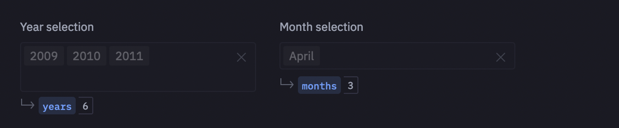 Next, we will use the original dataframe to get a list of the available years (years present in the data) as well as the available months. We then feed these lists into a dropdown input such that users have full control over which years and months they want to analyze.