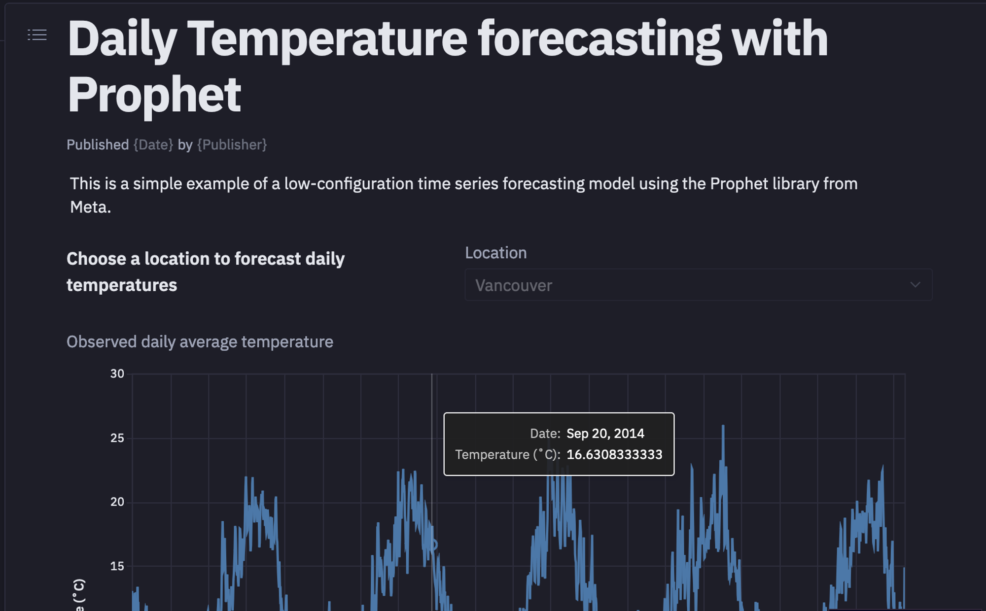 This is it, you have now created a time series forecasting model that can predict the temperature for future dates for selected locations. Once all the code part is done, you can head over to theApp section of the Hex environment and it will show you the dashboard for the code that you have written. You can customize this dashboard according to your needs by drag and drop feature.